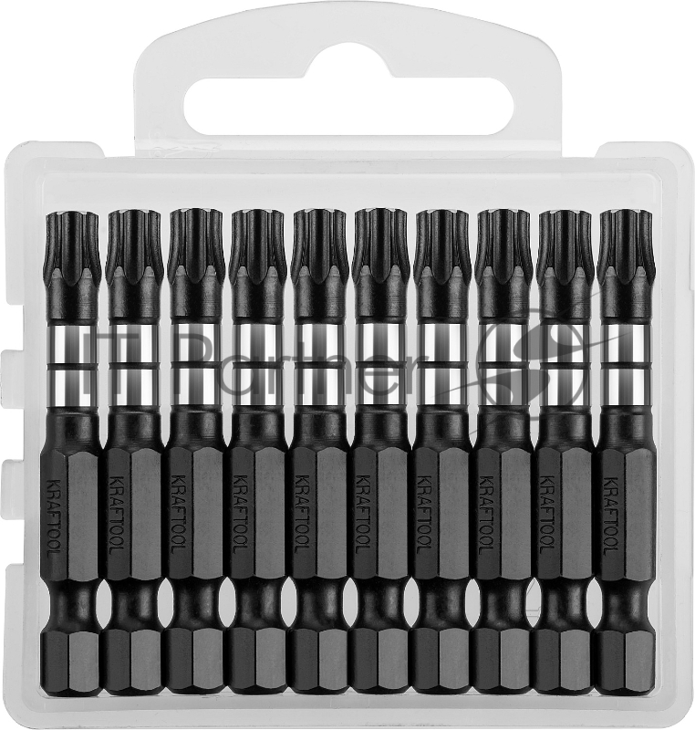 Биты KRAFTOOL Impact Pro, TORX, тип хвостовика E 1/4, TX30, 50мм, 10шт, в пластиковом боксе
