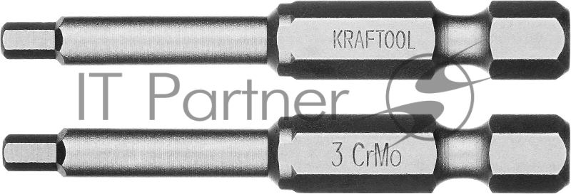 Биты KRAFTOOL X-DRIVE торсионные кованые, обточенные, Cr-Mo сталь, тип хвостовика E 1/4, HEX3, 50мм, 2шт