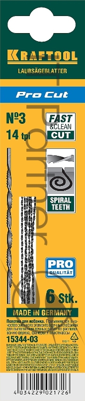 Полотна спиральные для лобзика KRAFTOOL Pro Cut 15344-03, №3, 130мм, 6шт