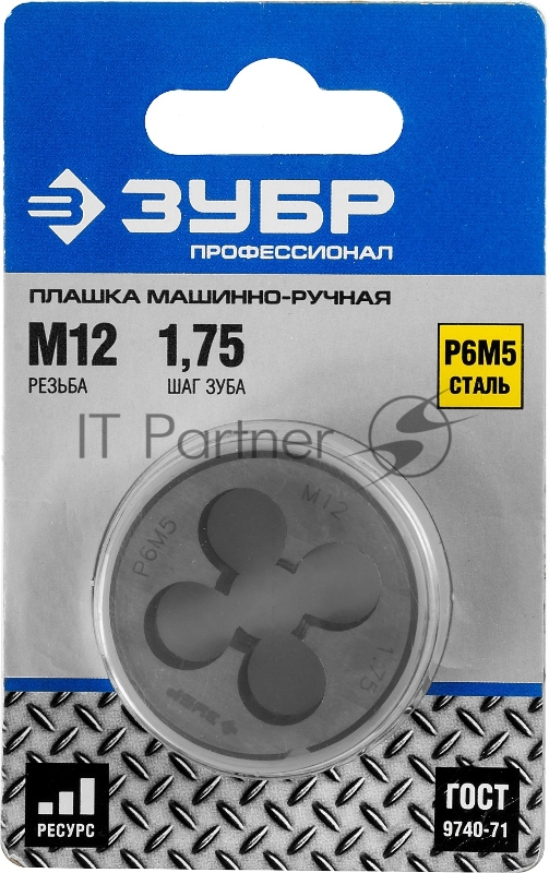 Плашка ЗУБР 4-28023-12-1.75_z01 М12x1.75мм, сталь Р6М5, круглая машинно-ручная