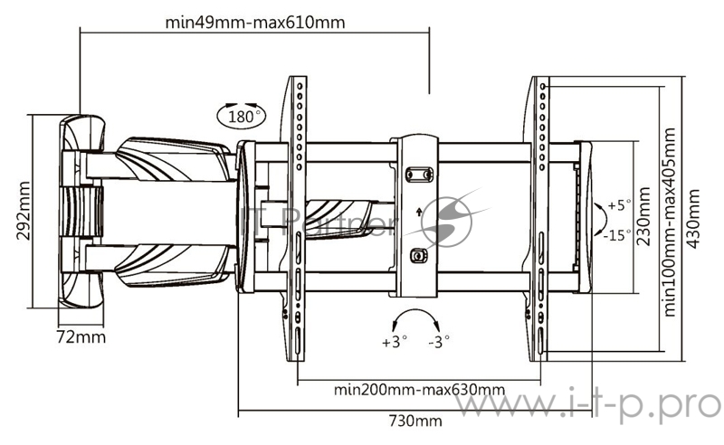 Кронштейн для телевизора Ultramounts UM 909 черный 37-75 макс.35кг настенный поворотно-выдвижной и наклонный