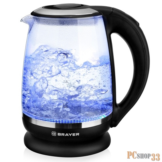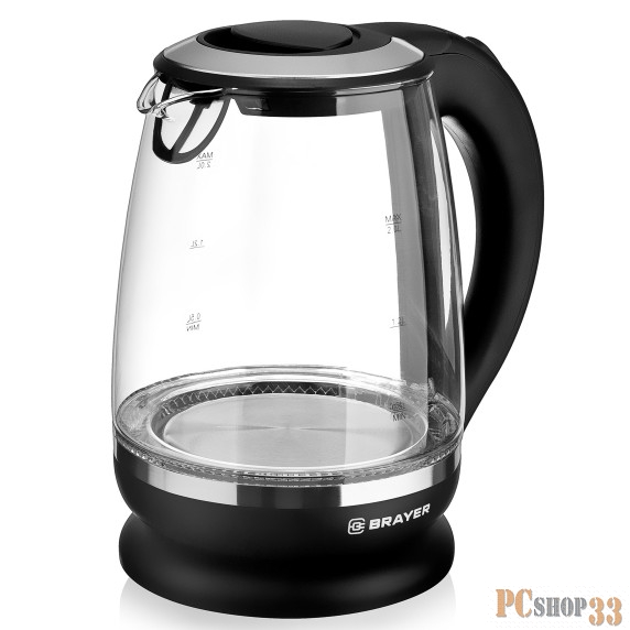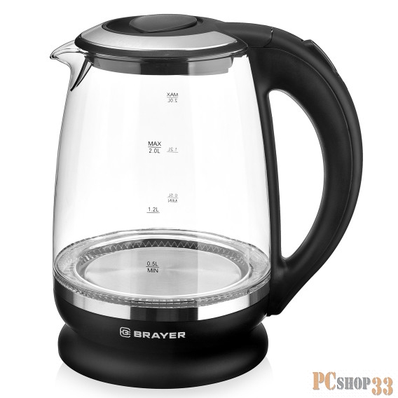 [Чайники BRAYER] BRAYER 1044BR-BK Чайник электрический, 2200 Вт, 2 л, автооткл, подсветка, моющ. фильтр, повор. осно
