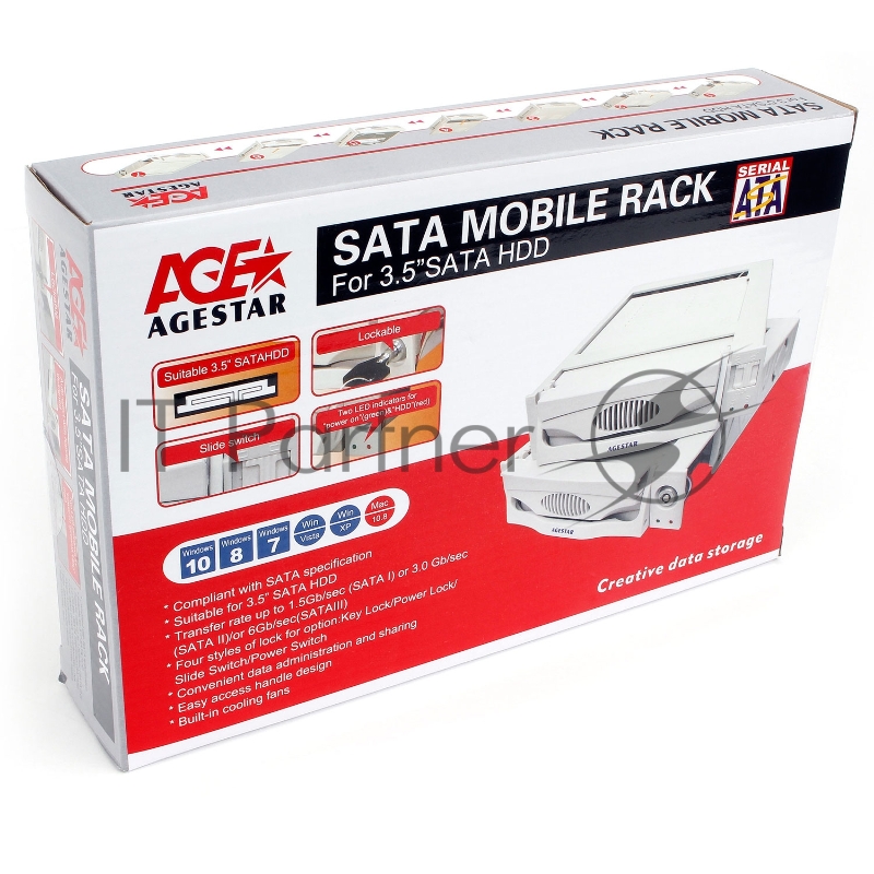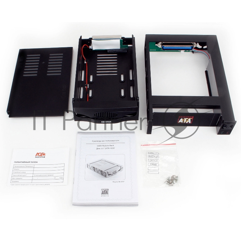 Салазки Mobile rack 3,5 SATA I/II/III AgeStar SR3P-S-1F (BLACK), пластик, чёрный