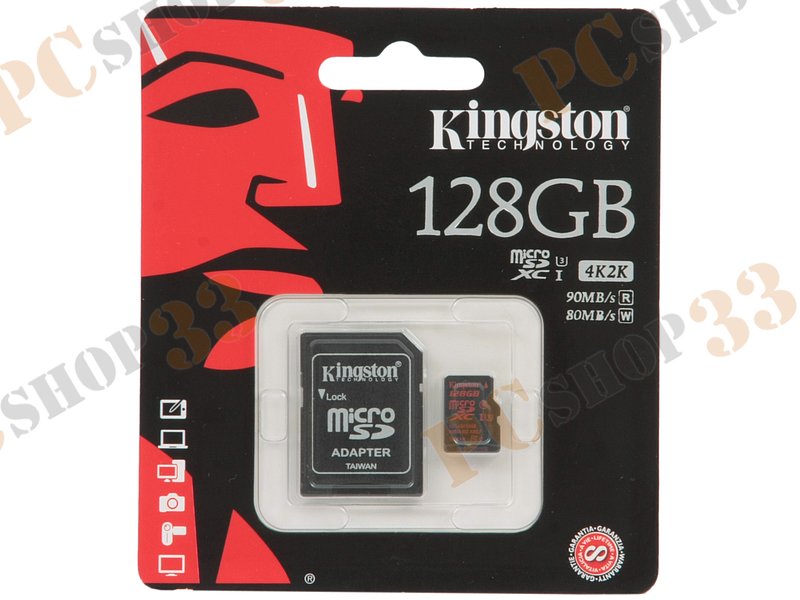 Карта памяти 128ГБ Kingston SDCA3/128GB microSD XC UHS-I Class10 + адаптер