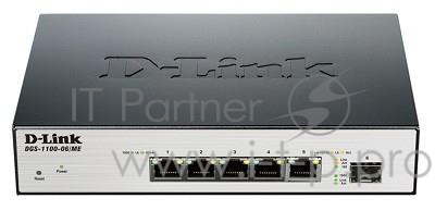 Сетевое оборудование D-Link DGS-1100-06/ME/A1B Настраиваемый коммутатор 2 уровня с 5 портами 10/100/1000Base-T и 1 портом 100/1000Base-X SFP