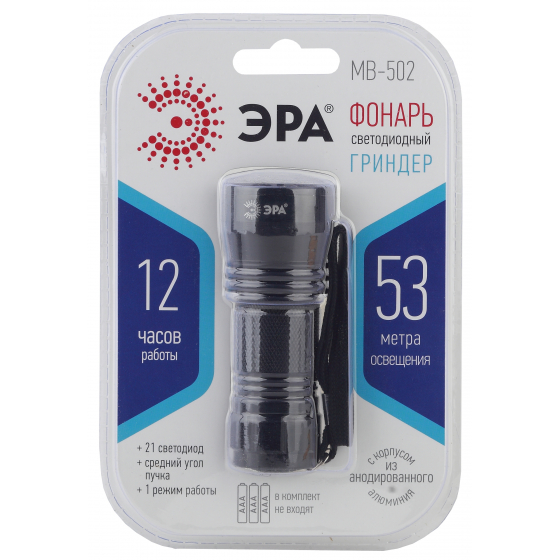 Фонари ЭРА Б0030194 Фонарь MB-502 Гриндер {21 светодиод, алюминий, черный цвет, 3хААА в комплект не входят}
