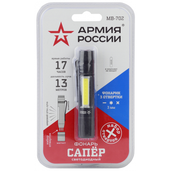 Фонари ЭРА Б0030200 Фонарь MB-702 Сапер {1,5Вт СОВ светодиод, алюминий, набор отверток, магнит, клипса 1хААА в комплекте}