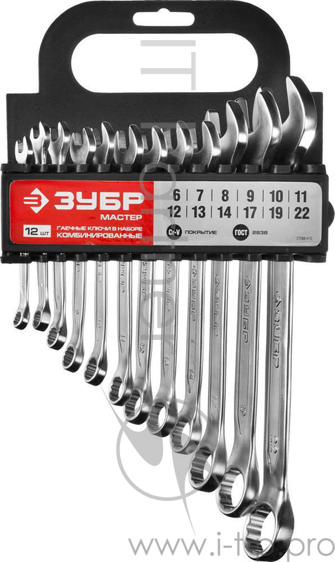 Набор комбинированных ключей ЗУБР 27088-H12 (6 - 22 мм) 12 шт.