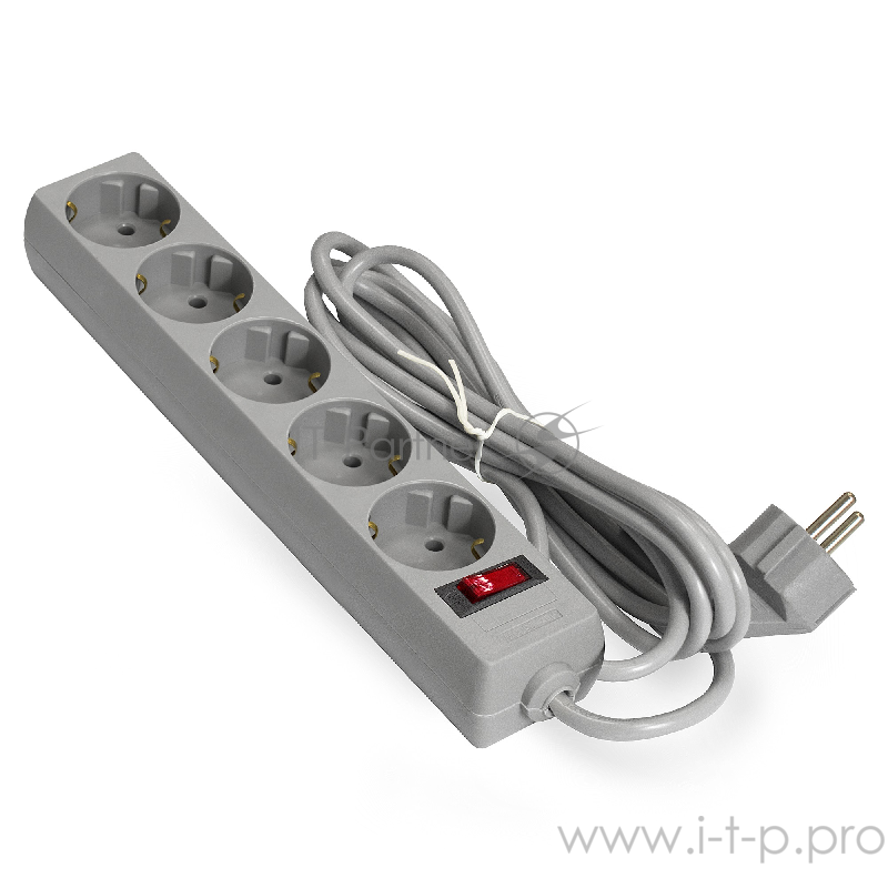 Удлинитель Exegate EX285800RUS EC-5-5G (5 евророзетки с заземлением, 5м, защита от перегрузки, выключатель с подсветкой, серый)