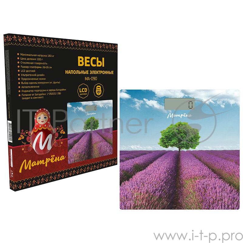 Весы напольные электронные МАТРЁНА МА-090 лаванда (стеклянная поверхность, 180 кг)