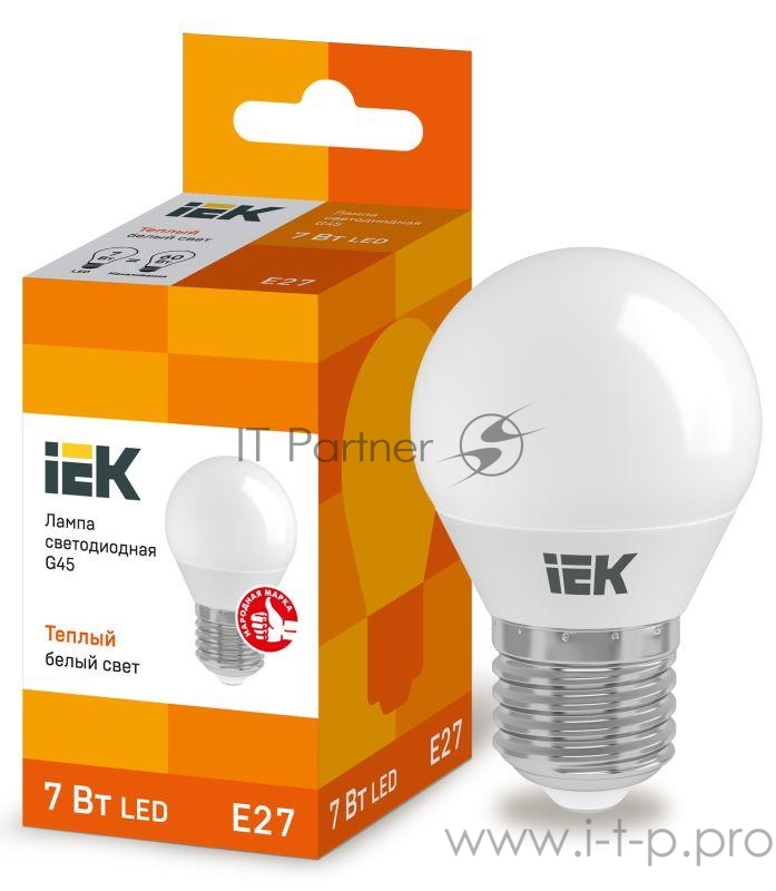 Лампа Iek LLE-G45-7-230-30-E27 светодиодная ECO G45 шар 7Вт 230В 3000К E27 IEK