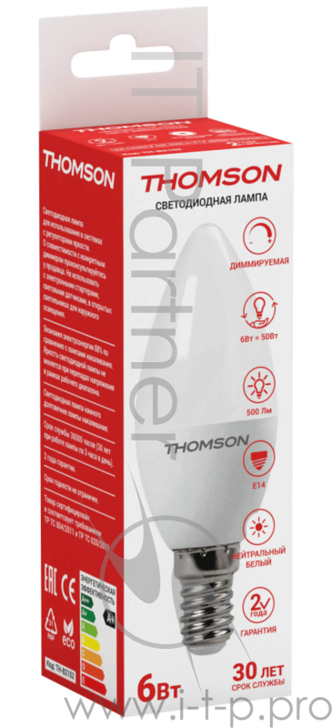 Лампа светодиодная Hiper THOMSON LED CANDLE 6W 500Lm E14 4000K DIMMABLE