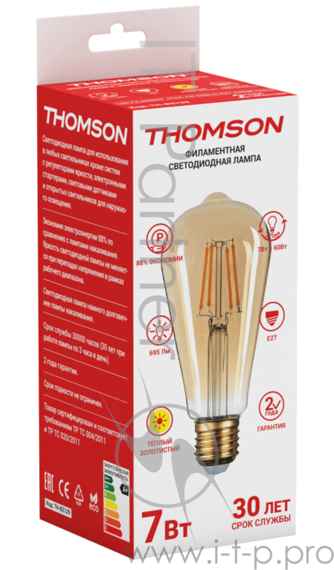 Лампа светодиодная Hiper THOMSON LED FILAMENT ST64 7W 695Lm E27 2400K GOLD