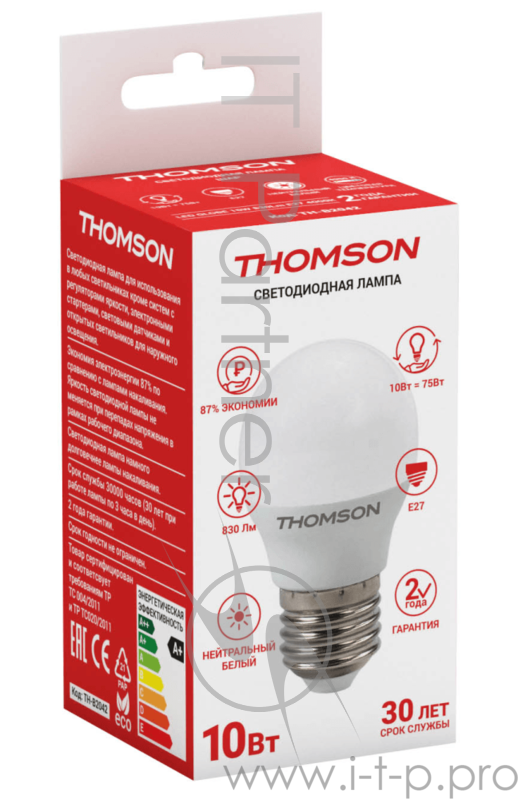 Лампа светодиодная Hiper THOMSON LED GLOBE 10W 830Lm E27 4000K TH-B2042