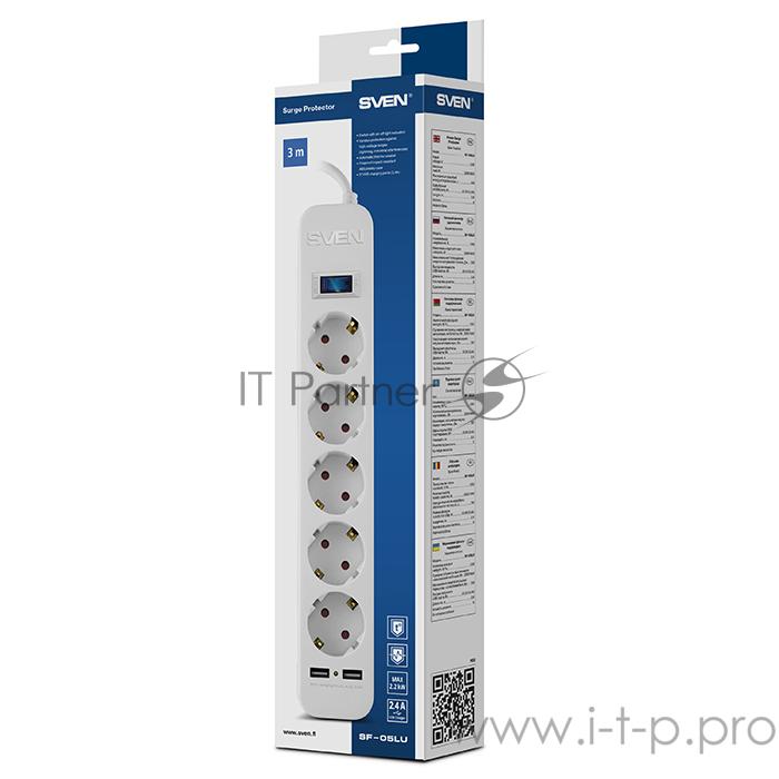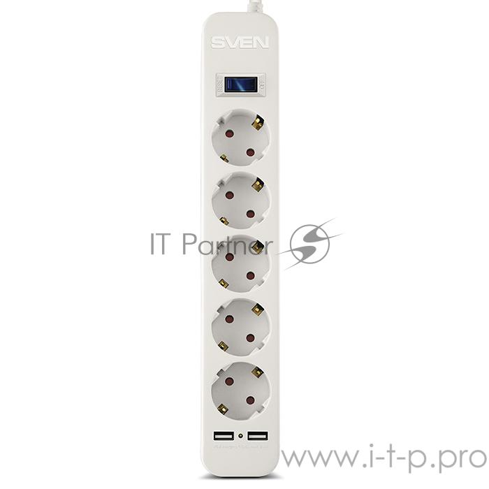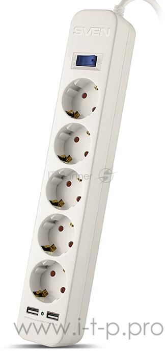 Фильтр SVEN SF-05LU 1,8 м (5 евро розеток,2 USB) белый, цветная коробка Surge protector SVEN SF-05LU 1,8 м (5 евро розеток,2 USB) белый, цветная коробка