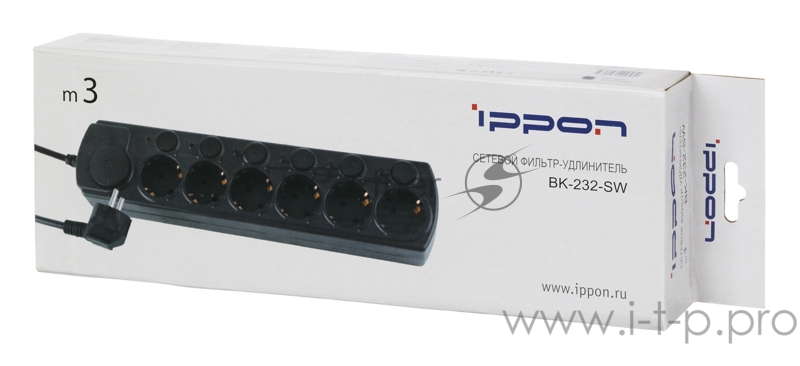 Сетевой фильтр Ippon BK232-SW 3м (6 розеток) черный (коробка)