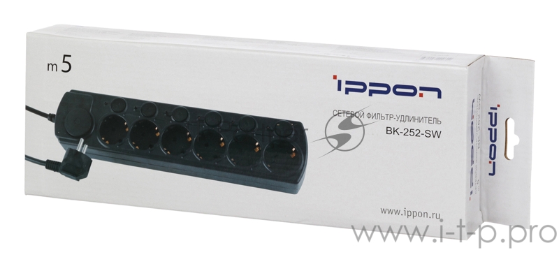 Сетевой фильтр Ippon BK252-SW 5м (6 розеток) черный (коробка)
