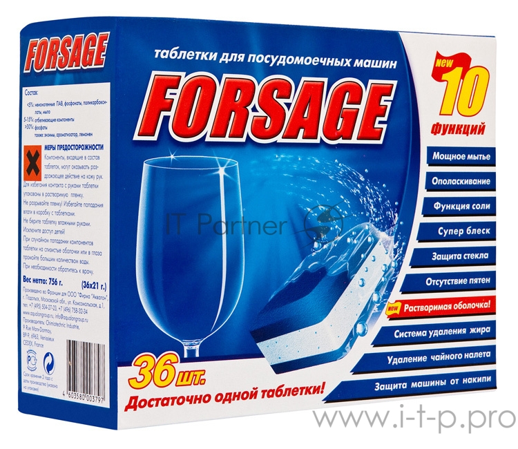 Таблетки Forsage 10в1 756кг (упак.:36шт) (273797) для посудомоечных машин