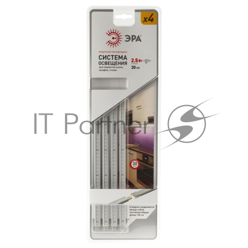 [Светодиодная лента] ЭРА LM-4x2,5-840-B1 {Светодиодный светильник, соединительный кабель, источник питания 15вт с выключателем и вилкой для розетки, крепежные клипсы, 3М скотч}