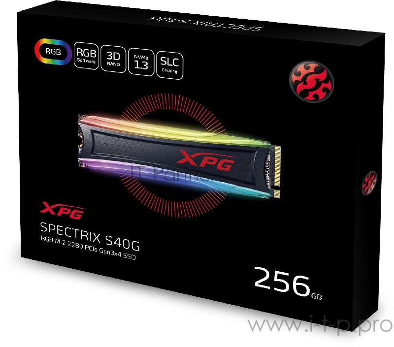 Твердотельный накопитель ADATA SPECTRIX S40G RGB SSD 256GB, 3D TLC, M.2 (2280), PCIe Gen 3.0 x4, NVMe, R3500/W1200, TBW 160