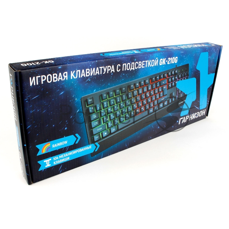 Клавиатура игровая Гарнизон GK-210G, USB, черный, 104 клавиши, подсветка Rainbow, кабель 1.5м
