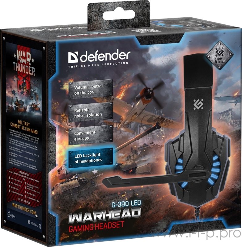 Гарнитура WARHEAD G-390 LED BLACK/BLUE 64039 DEFENDER