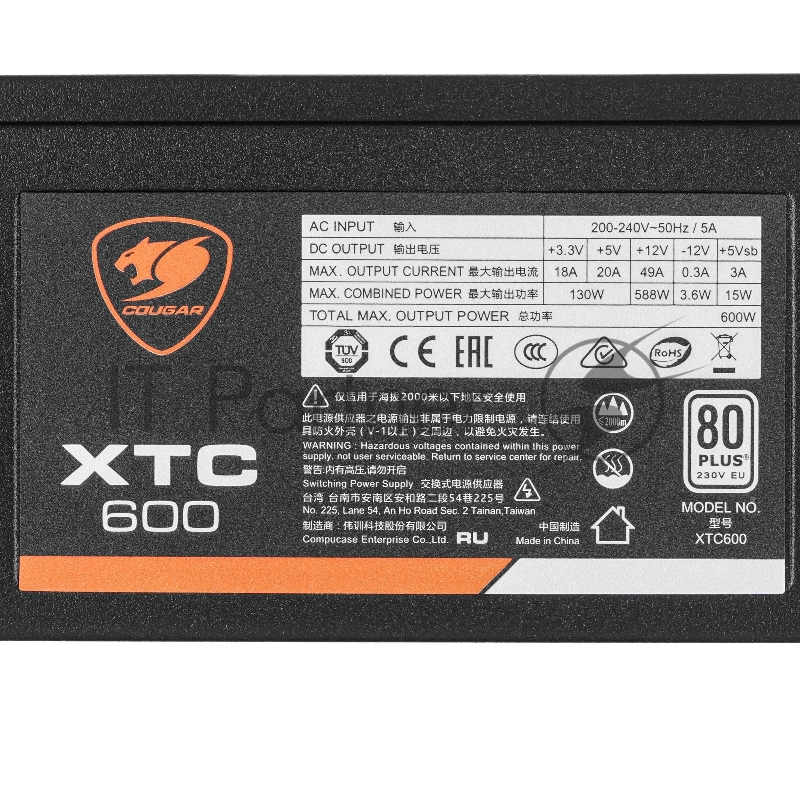 ![Блок питания Cougar XTC 600 (Разъем PCIe-2шт,ATX v2.31, 600W, Active PFC, 120mm Fan, Power cord, 80 Plus, Japanese standby capacitors) [XTC600] BULK](/shop/img/foto_big/566017_5.jpg)