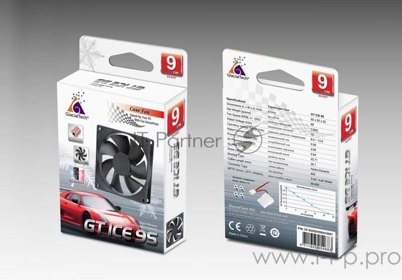 Вентилятор Glacialtech GT ICE 9S 90x90x25mm 3-pin 4-pin (Molex)20dB Ret