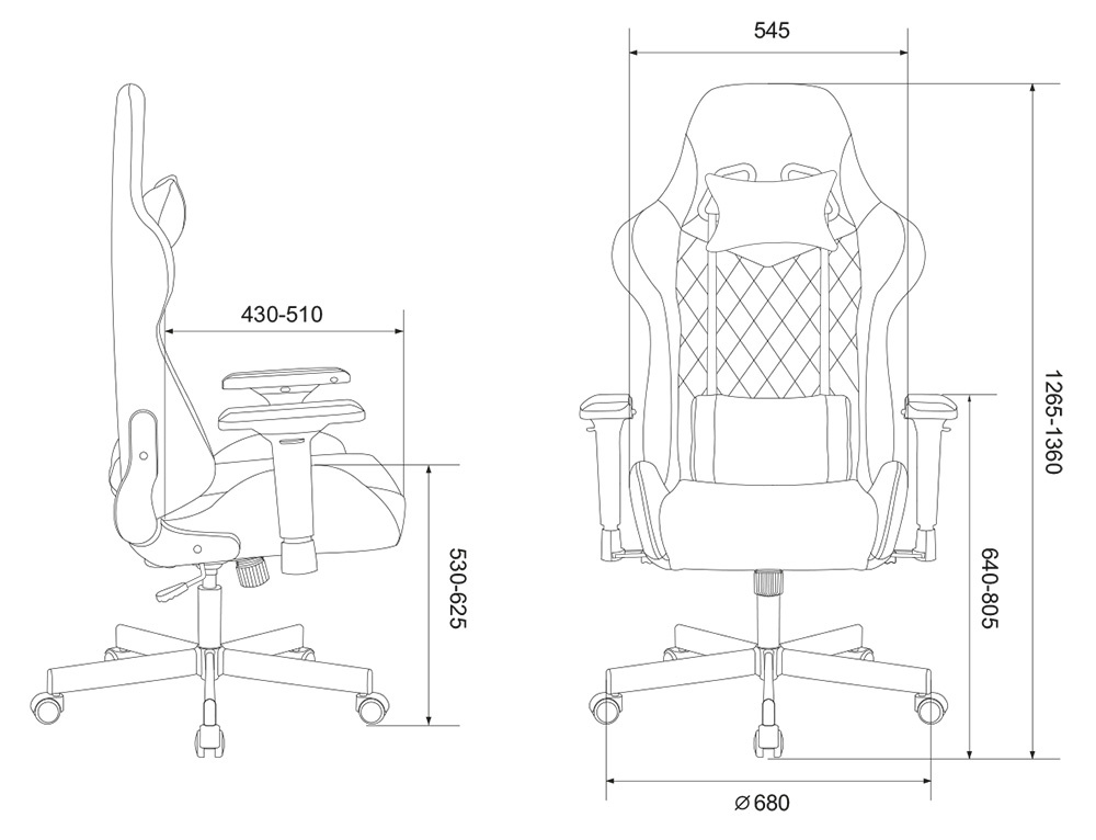 Высота с подлокотниками MIN640мм