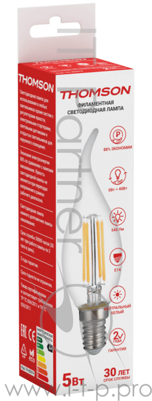 Лампа светодиодная Hiper THOMSON LED FILAMENT TAIL CANDLE 5W 545Lm E14 4500K TH-B2074