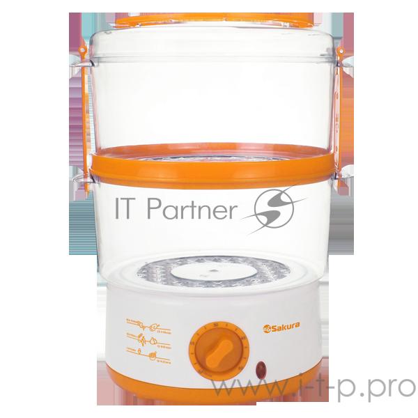 Пароварка Sakura SA-7213A 2ч (5,0л) 500Вт бел/оранж