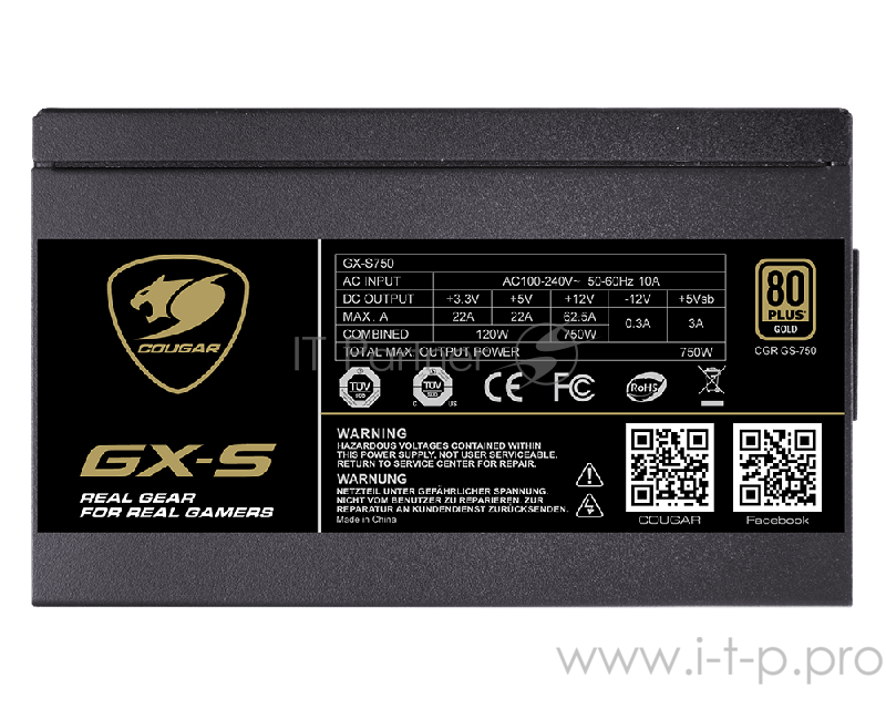 Блок питания Cougar GX-S 750 Блок питания GX-S 750 (Разъем PCIe-4шт,ATX v2.4, 750W, Active PFC, 120mm Fan, 80 Plus Gold) GX-S750 Retail