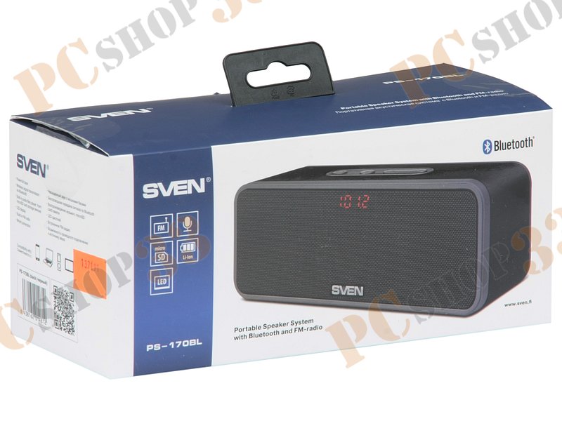 Акустическая система стерео Sven PS-170BL, 2x5Вт, портативная, с MP3 плеером, с FM радио, черный (Bluetooth)