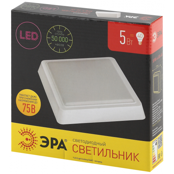 ЭРА Светильники ЖКХ ЭРА Б0020402 SPB-4-05-4K Светильник светодиодный ЖКХ 5Вт 4000К 400лм квадрат 170x38 БЕЛ