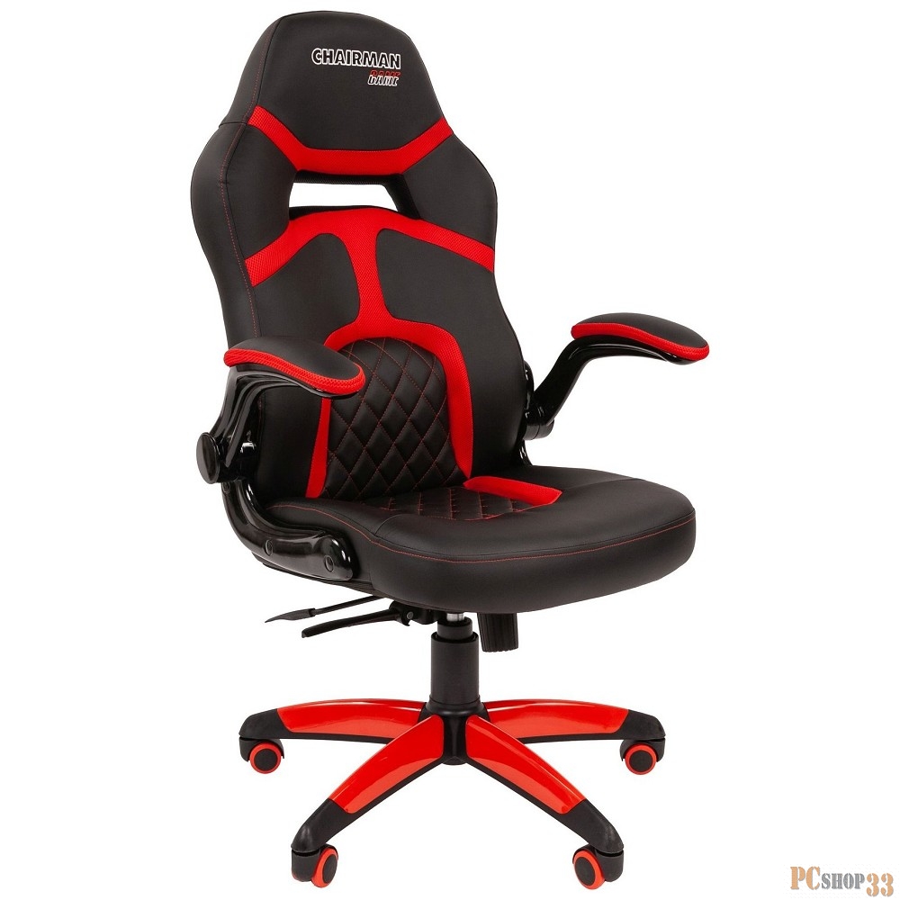 Игровое кресло Chairman game 18 чёрное/красное (Экокожа/Ткань TW, пластик, газпатрон 3 кл, ролики, механизм качания)