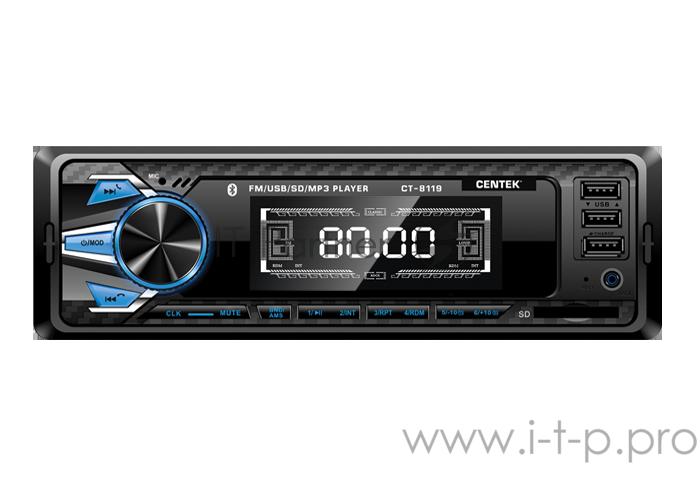 Автомагнитола Centek СТ-8119 <4х50 Вт> BLUETOOTH, 4-х канальный RCA, 3xUSB/AUX/SD/MMC, mp3