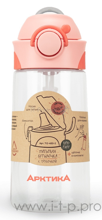 Бутылка Арктика 712-450-2 0.45л прозрачный/коралловый тритан (компл.:трубочка) карт.кор. (712-450-2/COR)