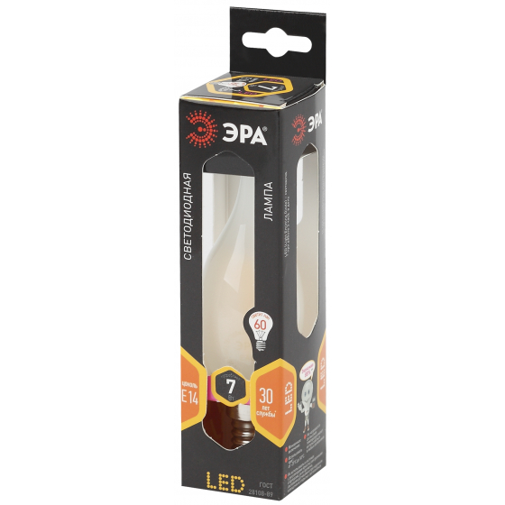 ЭРА Светодиодные лампы ЭРА Б0027954 Светодиодная лампа свеча на ветру матовая F-LED BXS-7w-827-E14 frozed