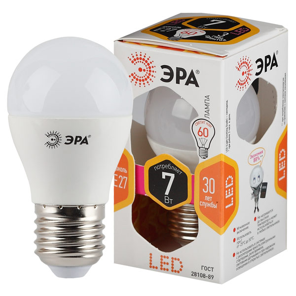 ЭРА Светодиодные лампы ЭРА Б0035591 Светодиодная лампа шарик F-LED P45-7w-827-E27 {2 партия Б0027948}
