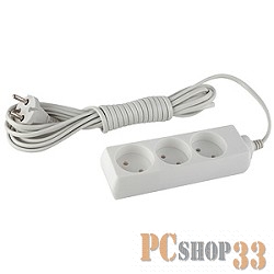ЭРА Удлинители бытовые, Сетевые фильтры ЭРА Б0004989 Удлинитель UX-3-3m без заземления 3 гнезда 3 м {ABS-пластик, 2х0.75 мм2}