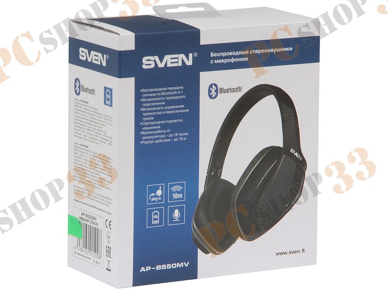 Гарнитура Sven AP-B550MV, беспроводная, с регулятором громкости (Bluetooth)