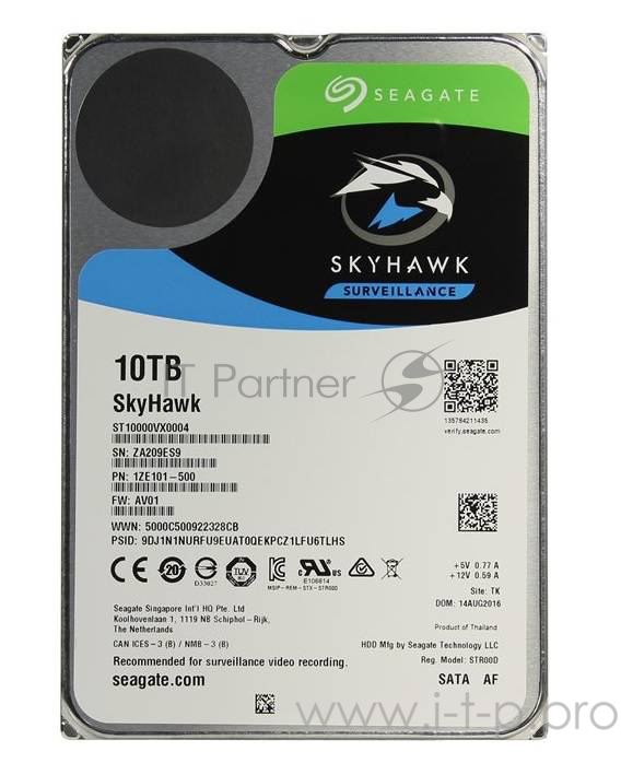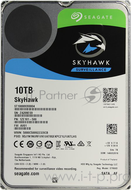 Жесткий диск Seagate Original SATA-III 10Tb ST10000VX0004 Skyhawk (7200rpm) 256Mb 3.5