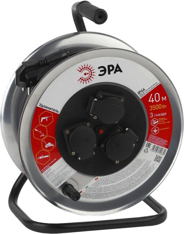 Эра Силовые удлинители на рамке и на катушке ЭРА Б0035324 Удлинитель силовой RM-3-3x1-40m-IP44 c заземлением 3 гн ПВС 3х1,0 металлическая катушка