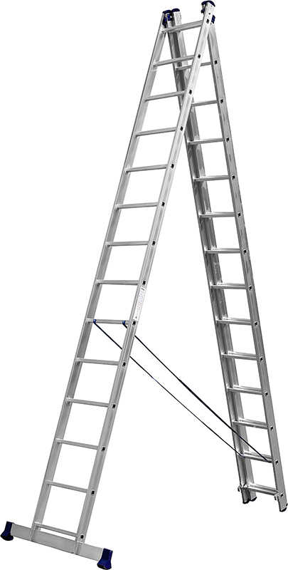 Лестницы, стремянки Лестница СИБИН универсальная,трехсекционная со стабилизатором, 14 ступеней 38833-14