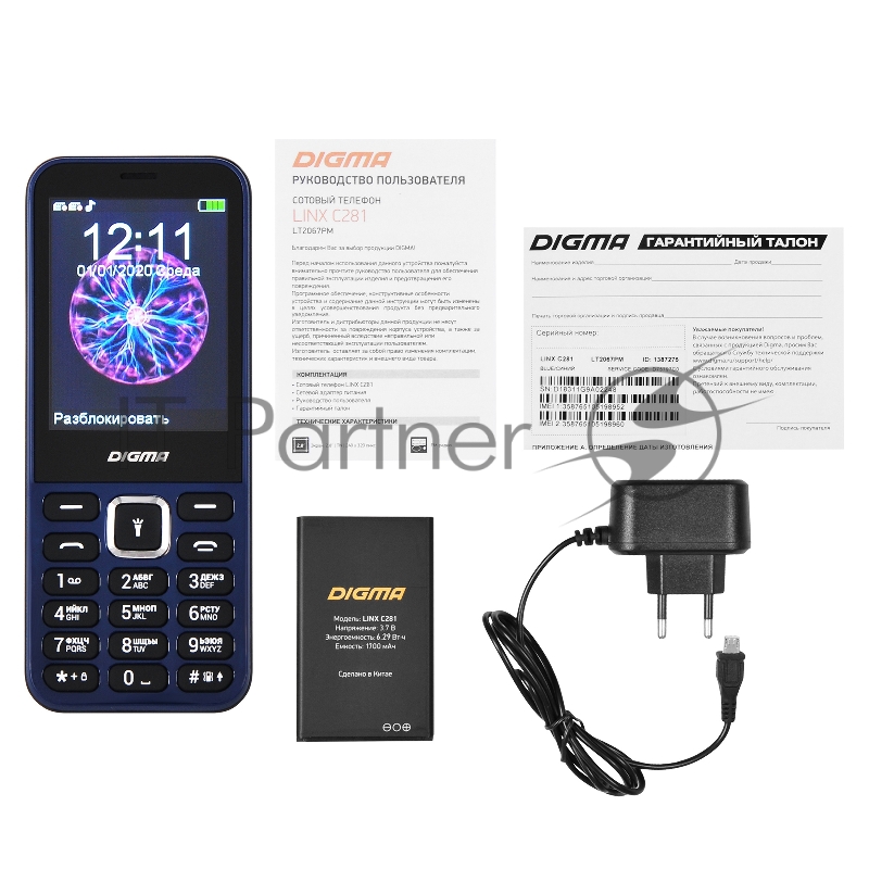 Мобильный телефон Digma C281 Linx 32Mb синий моноблок 2Sim 2.8 240x320 0.08Mpix GSM900/1800 MP3 microSD