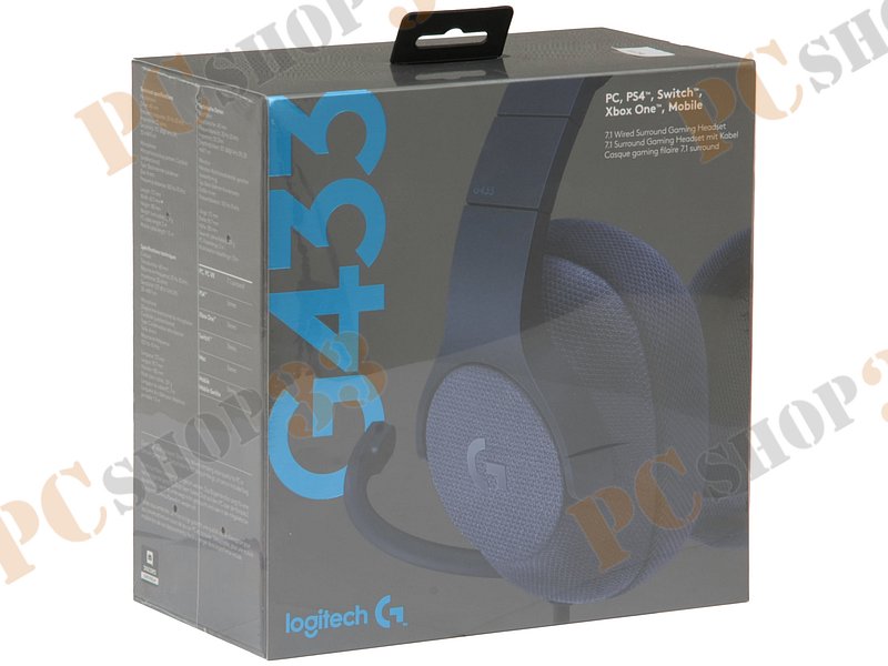 Гарнитура Logitech G433 7.1 Wired Surround Gaming Headset, с регулятором громкости (USB), синий