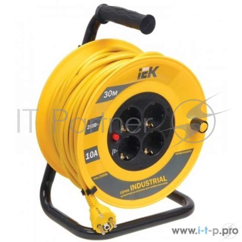 удлинители силовые Iek WKP14-10-04-30 Катушка УК30 с т/з 4 места 2 Р + P Е /30м 3х1,0 мм2 "Industrial"