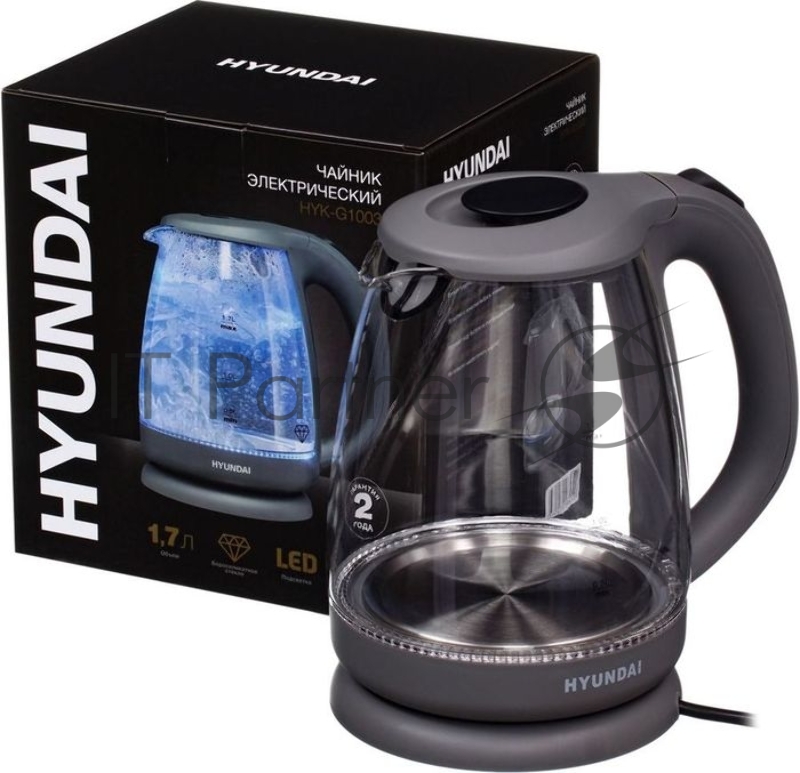 Чайник электрический Hyundai HYK-G1003 1.7л. 2200Вт серый (корпус: стекло)