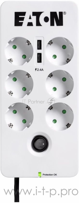 Сетевой фильтр Eaton Protection Box 6 1.8м (6 розеток) белый/черный (коробка)