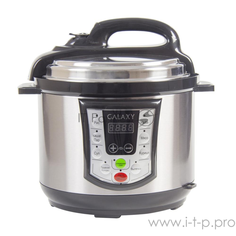 Мультиварка Galaxy GL2651, нерж. сталь/черный Мультиварка- скороварка 900 Вт, 8 программ приготовления, антипригарная съемная чаша объемом 5л, давление пара до 70 кПа, электронное управление, светодиодный дисплей, таймер, отложенный старт до 24часов